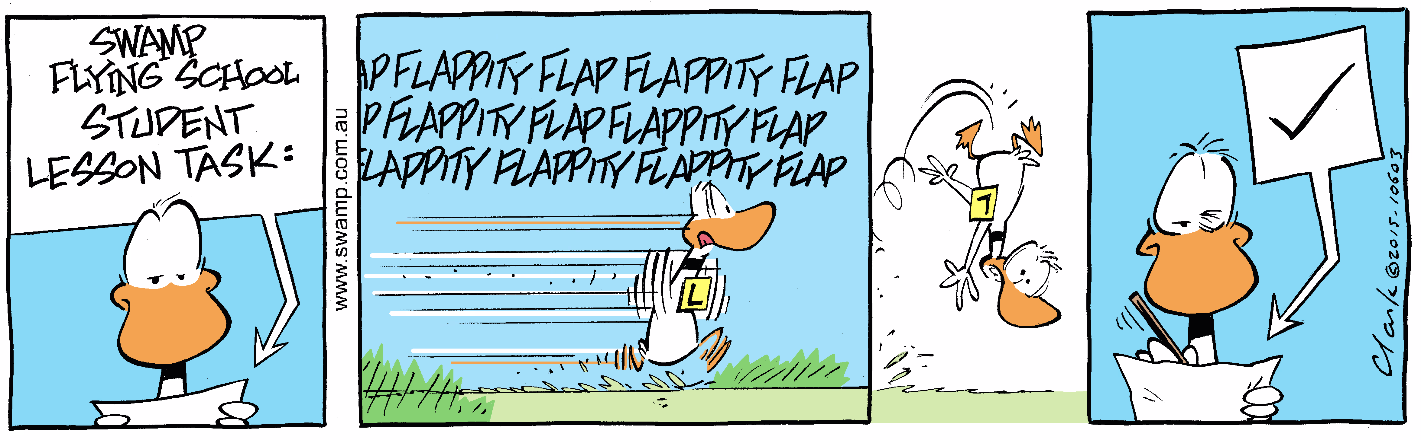 An original black & white Swamp Cartoon called “Student Lesson Task”. Yep, I can sort of, possibly, maybe tick that box….lightly.