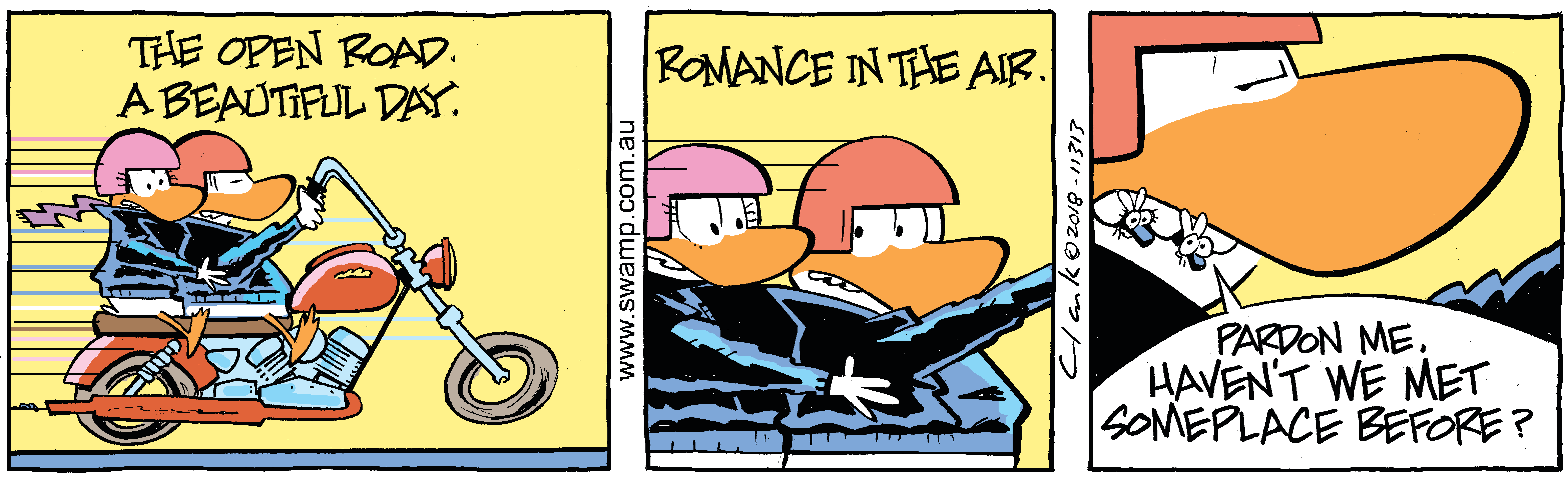 Tags flies, motorcycle, romance, wild ducks