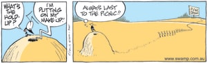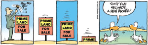Cartoon ID Categories Air Traffic ControllerAntsArmy DucksAviator DucksBludgerigar BirdBob CrayfishCarrier PigeonCheese & Chives RatsChefChickenscockroachesDing DuckDing's DadDung BeetlesFishFliesFlying School InstructorKamikaze DuckMosquitoesOld Man Croc & Nit-Picker BirdPigspilotsPoultry SquadRogue CrocsSwamp DucksSwamp ToursSwamp VetTurtle & SnailUncategorizedWart & Mort FrogsWild DucksWorms KeyWords Location Exclude Sunday Featured Character Featured Character 8005 (20/11/25) : Prime Land For Sale 8004 (19/11/25) : Peacekeepers 8003 (18/11/25) : Wild Ducks Ride Comic 8002 (17/11/25) : Wild Duck Courier S1003 (16/11/25) : Psychiatrist 9005 (15/11/25) : Lifes Like That 9003 (14/11/25) : Chicken has it Nailed 9000 (13/11/25) : Rational Thinking 10106 (12/11/25) : Army Duck Battle Plan Next