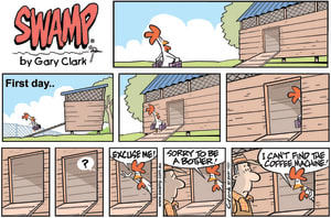 Cartoon ID Categories Air Traffic ControllerAntsArmy DucksAviator DucksBludgerigar BirdBob CrayfishCarrier PigeonCheese & Chives RatsChefChickenscockroachesDing DuckDing's DadDung BeetlesFishFliesFlying School InstructorKamikaze DuckMosquitoesOld Man Croc & Nit-Picker BirdPigspilotsPoultry SquadRogue CrocsSwamp DucksSwamp ToursSwamp VetTurtle & SnailWart & Mort FrogsWild DucksWorms KeyWords Location Exclude Sunday Featured Character Featured Character 12204 (01/03/21) : Camping Bed Buddies s1939 (28/02/21) : Cheese and Chives Rats Love Treasure 12213 (27/02/21) : Thank You for Wonderful Day 12212 (26/02/21) : Chicken Gets Delivery Just In Time 12211 (25/02/21) : Ding’s Exam Time Is Up 12210 (24/02/21) : Dung Balls Product Recall 12209 (23/02/21) : Factory Quality Control 12208 (22/02/21) : A Week in Ding Duck’s Life S1937 (21/02/21) : Chicken Arrives For First Day Next