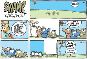 Cartoon ID Categories Air Traffic ControllerAntsArmy DucksAviator DucksBludgerigar BirdBob CrayfishCarrier PigeonCheese & Chives RatsChefChickenscockroachesDing DuckDing's DadDung BeetlesFishFliesFlying School InstructorKamikaze DuckMosquitoesOld Man Croc & Nit-Picker BirdPigspilotsPoultry SquadRogue CrocsSwamp DucksSwamp ToursSwamp VetTurtle & SnailUncategorizedWart & Mort FrogsWild DucksWorms KeyWords Location Exclude Sunday Featured Character Featured Character S1640 (16/04/23) : Beneath the Water 11230 (15/04/23) : Think Outside the Box 11226 (14/04/23) : Bomb Disposal 11228 (13/04/23) : Everything is all Clear 11224 (12/04/23) : Become Lightning Rods 11220 (11/04/23) : Turtle has Flipped 11219 (10/04/23) : Laden With Food S1635 (09/04/23) : Tested for Pain Tolerance 11217 (08/04/23) : Dived into Wrong Hole Previous Next