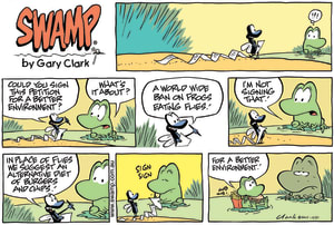 Cartoon ID Categories Air Traffic ControllerAntsArmy DucksAviator DucksBludgerigar BirdBob CrayfishCarrier PigeonCheese & Chives RatsChefChickenscockroachesDing DuckDing's DadDung BeetlesFishFliesFlying School InstructorKamikaze DuckMosquitoesOld Man Croc & Nit-Picker BirdPigspilotsPoultry SquadRogue CrocsSwamp DucksSwamp ToursSwamp VetTurtle & SnailUncategorizedWart & Mort FrogsWild DucksWorms KeyWords Location Exclude Sunday Featured Character Featured Character 11216 (07/04/23) : Playing Dead 11215 (06/04/23) : Extreme Eco Tourism 11213 (05/04/23) : Building Their Nest 11212 (04/04/23) : Flicking Mothballs 11210 (03/04/23) : May Not Be Right S1637 (02/04/23) : Ban Eating Flies 11208 (01/04/23) : Light Goes Out 11206 (31/03/23) : Enthusiasm Fads Away 11204 (30/03/23) : Reverses into Swamp Previous Next