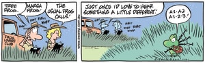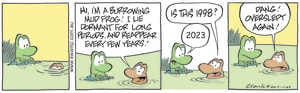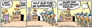 Cartoon ID Categories Air Traffic ControllerAntsArmy DucksAviator DucksBludgerigar BirdBob CrayfishCarrier PigeonCheese & Chives RatsChefChickenscockroachesDing DuckDing's DadDung BeetlesFishFliesFlying School InstructorKamikaze DuckMosquitoesOld Man Croc & Nit-Picker BirdPigspilotsPoultry SquadRogue CrocsSwamp DucksSwamp ToursSwamp VetTurtle & SnailUncategorizedWart & Mort FrogsWild DucksWorms KeyWords Location Exclude Sunday Featured Character Featured Character 11146 (02/03/23) : Miss the Easy Putt 11145 (01/03/23) : Mud Burrowing Frog 11144 (28/02/23) : Important Procedure Changes 11143 (27/02/23) : Agreement to Feed Crocs S1667 (26/02/23) : Voices Coming From Drainpipe 11142 (25/02/23) : An Optimistic Crayfish 11141 (24/02/23) : Usual Frog Calls 11140 (23/02/23) : White Flag Surrendering 11139 (22/02/23) : Needs Touching Up Previous Next