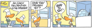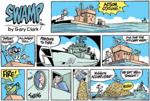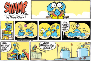 Cartoon ID Categories Air Traffic ControllerAntsArmy DucksAviator DucksBludgerigar BirdBob CrayfishCarrier PigeonCheese & Chives RatsChefChickenscockroachesDing DuckDing's DadDung BeetlesFishFliesFlying School InstructorKamikaze DuckMosquitoesOld Man Croc & Nit-Picker BirdPigspilotsPoultry SquadRogue CrocsSwamp DucksSwamp ToursSwamp VetTurtle & SnailUncategorizedWart & Mort FrogsWild DucksWorms KeyWords Location Exclude Sunday Featured Character Featured Character S1619 (12/02/23) : Calling Action Stations 11123 (11/02/23) : Stuck on Boggy Road 11122 (10/02/23) : Battle Plan 11120 (09/02/23) : Aerial Spraying 11116 (08/02/23) : Turn to be Upwind 11113 (07/02/23) : Crayfish are Frozen 11109 (06/02/23) : Aircraft is Turning Back S1616 (05/02/23) : Acting as Lifeguard 11107 (04/02/23) : Window Seats Previous Next