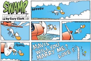 Cartoon ID Categories Air Traffic ControllerAntsArmy DucksAviator DucksBludgerigar BirdBob CrayfishCarrier PigeonCheese & Chives RatsChefChickenscockroachesDing DuckDing's DadDung BeetlesFishFliesFlying School InstructorKamikaze DuckMosquitoesOld Man Croc & Nit-Picker BirdPigspilotsPoultry SquadRogue CrocsSwamp DucksSwamp ToursSwamp VetTurtle & SnailUncategorizedWart & Mort FrogsWild DucksWorms KeyWords Location Exclude Sunday Featured Character Featured Character S1032 (20/07/25) : Unique Marriage Proposal 9973 (19/07/25) : Latest Attraction Comic 9971 (18/07/25) : Perfectly Quiet Comic 9970 (17/07/25) : Never Flown Comic 9969 (16/07/25) : Flappity Flippity Comic 9967 (15/07/25) : Red Looks Good Comic 9965 (14/07/25) : Source of Infection Comic S1031 (13/07/25) : Flycam 9964 (12/07/25) : Focused Comic Previous Next