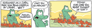 Cartoon ID Categories Air Traffic ControllerAntsArmy DucksAviator DucksBludgerigar BirdBob CrayfishCarrier PigeonCheese & Chives RatsChefChickenscockroachesDing DuckDing's DadDung BeetlesFishFliesFlying School InstructorKamikaze DuckMosquitoesOld Man Croc & Nit-Picker BirdPigspilotsPoultry SquadRogue CrocsSwamp DucksSwamp ToursSwamp VetTurtle & SnailUncategorizedWart & Mort FrogsWild DucksWorms KeyWords Location Exclude Sunday Featured Character Featured Character 11106 (03/02/23) : Sucked into Jet Engine 11103 (02/02/23) : Catch of the Day 11100 (01/02/23) : Edge of Extinction 11099 (31/01/23) : Overrun by Red Crabs 11098 (30/01/23) : Things Could be Worse S1647 (29/01/23) : Navigation Instructor 11096 (28/01/23) : Compression Test 11092 (27/01/23) : Live Music Night 11093 (26/01/23) : Cheese Rat Snacking Previous Next