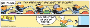 Cartoon ID Categories Air Traffic ControllerAntsArmy DucksAviator DucksBludgerigar BirdBob CrayfishCarrier PigeonCheese & Chives RatsChefChickenscockroachesDing DuckDing's DadDung BeetlesFishFliesFlying School InstructorKamikaze DuckMosquitoesOld Man Croc & Nit-Picker BirdPigspilotsPoultry SquadRogue CrocsSwamp DucksSwamp ToursSwamp VetTurtle & SnailUncategorizedWart & Mort FrogsWild DucksWorms KeyWords Location Exclude Sunday Featured Character Featured Character 11091 (25/01/23) : Two Unrelated Circumstances 11084 (24/01/23) : Bush Fly Try Out 11072 (23/01/23) : Compost to Go S1658 (22/01/23) : Factors Contributing to Accident 11080 (21/01/23) : Indian Cuisine 11079 (20/01/23) : Serving Italian Cuisine 11067 (19/01/23) : Approached Rogue Crocs 11066 (18/01/23) : Edge of Distinction 11036 (17/01/23) : Naughts and Crosses Previous Next