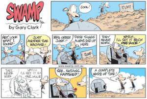 Cartoon ID Categories Air Traffic ControllerAntsArmy DucksAviator DucksBludgerigar BirdBob CrayfishCarrier PigeonCheese & Chives RatsChefChickenscockroachesDing DuckDing's DadDung BeetlesFishFliesFlying School InstructorKamikaze DuckMosquitoesOld Man Croc & Nit-Picker BirdPigspilotsPoultry SquadRogue CrocsSwamp DucksSwamp ToursSwamp VetTurtle & SnailUncategorizedWart & Mort FrogsWild DucksWorms KeyWords Location Exclude Sunday Featured Character Featured Character 10956 (26/11/22) : Bunch of Balloons 10955 (25/11/22) : Sick Looking Cheese Rat 10952 (24/11/22) : Group of Tourists 10950 (23/11/22) : Gone Upmarket 10948 (22/11/22) : Hadron Collider 10947 (21/11/22) : Fly Dispatch Centre S1427 (20/11/22) : Dumped Time Machine 10946 (19/11/22) : Encounter Rogue Crocs 10945 (18/11/22) : Mountain of Paperwork Previous Next