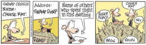 Cartoon ID Categories Air Traffic ControllerAntsArmy DucksAviator DucksBludgerigar BirdBob CrayfishCarrier PigeonCheese & Chives RatsChefChickenscockroachesDing DuckDing's DadDung BeetlesFishFliesFlying School InstructorKamikaze DuckMosquitoesOld Man Croc & Nit-Picker BirdPigspilotsPoultry SquadRogue CrocsSwamp DucksSwamp ToursSwamp VetTurtle & SnailUncategorizedWart & Mort FrogsWild DucksWorms KeyWords Location Exclude Sunday Featured Character Featured Character 10942 (17/11/22) : While Playing Golf 10941 (16/11/22) : Dwelling With Them 10930 (15/11/22) : Exam Week 10938 (14/11/22) : Swamp Census S1493 (13/11/22) : Joining the Army 10929 (12/11/22) : Shock the Class 10936 (11/11/22) : Report a Missing Friend 10926 (10/11/22) : Simmering Away 10925 (09/11/22) : Domino Effect Previous Next