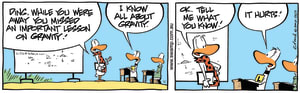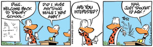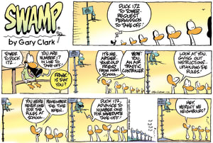 Cartoon ID Categories Air Traffic ControllerAntsArmy DucksAviator DucksBludgerigar BirdBob CrayfishCarrier PigeonCheese & Chives RatsChefChickenscockroachesDing DuckDing's DadDung BeetlesFishFliesFlying School InstructorKamikaze DuckMosquitoesOld Man Croc & Nit-Picker BirdPigspilotsPoultry SquadRogue CrocsSwamp DucksSwamp ToursSwamp VetTurtle & SnailUncategorizedWart & Mort FrogsWild DucksWorms KeyWords Location Exclude Sunday Featured Character Featured Character 9959 (11/07/25) : Lesson on Gravity 9958 (10/07/25) : Welcome Back Comic 9957 (09/07/25) : Joys of Back to School Comic 9956 (08/07/25) : Back to Flying School Comic 9955 (07/07/25) : Crunchy Breakfast Comic S1134 (06/07/25) : Ducks on Parade 9954 (05/07/25) : In Danger Comic 10011 (04/07/25) : New to the Job Comic 10010 (03/07/25) : Peace and Quiet Comic Previous Next