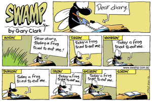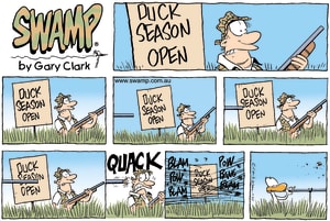 Cartoon ID Categories Air Traffic ControllerAntsArmy DucksAviator DucksBludgerigar BirdBob CrayfishCarrier PigeonCheese & Chives RatsChefChickenscockroachesDing DuckDing's DadDung BeetlesFishFliesFlying School InstructorKamikaze DuckMosquitoesOld Man Croc & Nit-Picker BirdPigspilotsPoultry SquadRogue CrocsSwamp DucksSwamp ToursSwamp VetTurtle & SnailUncategorizedWart & Mort FrogsWild DucksWorms KeyWords Location Exclude Sunday Featured Character Featured Character 9055 (19/05/25) : Dangerous Liasons S1125 (18/05/25) : Duck Hunter Pranked 9054 (17/05/25) : Endangered Species 9053 (16/05/25) : Stupid Question 9052 (15/05/25) : Ding Duck Weather Research Comic 9051 (14/05/25) : Obvious Question 9050 (13/05/25) : Lost Patience 9049 (12/05/25) : Memories Rarely Fade S1124 (11/05/25) : Dear Diary Previous Next