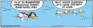 Cartoon ID Categories Air Traffic ControllerAntsArmy DucksAviator DucksBludgerigar BirdBob CrayfishCarrier PigeonCheese & Chives RatsChefChickenscockroachesDing DuckDing's DadDung BeetlesFishFliesFlying School InstructorKamikaze DuckMosquitoesOld Man Croc & Nit-Picker BirdPigspilotsPoultry SquadRogue CrocsSwamp DucksSwamp ToursSwamp VetTurtle & SnailUncategorizedWart & Mort FrogsWild DucksWorms KeyWords Location Exclude Sunday Featured Character Featured Character 9040 (01/05/25) : Escape the Bad Weather 9039 (30/04/25) : A Cosy Night 9038 (29/04/25) : Tough Case 9037 (28/04/25) : Administration Trouble S1122 (27/04/25) : Flying Hazard 9036 (26/04/25) : Poor Decision 9034 (25/04/25) : Ding Duck Feels Embarrassed 9035 (24/04/25) : Lush Landing 9033 (23/04/25) : Ground is Soft Previous Next