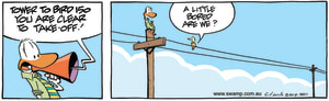 Cartoon ID Categories Air Traffic ControllerAntsArmy DucksAviator DucksBludgerigar BirdBob CrayfishCarrier PigeonCheese & Chives RatsChefChickenscockroachesDing DuckDing's DadDung BeetlesFishFliesFlying School InstructorKamikaze DuckMosquitoesOld Man Croc & Nit-Picker BirdPigspilotsPoultry SquadRogue CrocsSwamp DucksSwamp ToursSwamp VetTurtle & SnailUncategorizedWart & Mort FrogsWild DucksWorms KeyWords Location Exclude Sunday Featured Character Featured Character 9856 (24/02/25) : Urgent Message Comic S1209 (23/02/25) : Putting on a Show 9854 (22/02/25) : Interrogation Mistake 9830 (21/02/25) : Chaos in Air Traffic Control Comic 9829 (20/02/25) : Clear To Land Cartoon 9828 (19/02/25) : Quiet Day for Air Traffic Control 9827 (18/02/25) : Control Tower to Bird 150 9826 (17/02/25) : Assignment Due Today S1208 (16/02/25) : Navigation Instructor Lost Previous Next