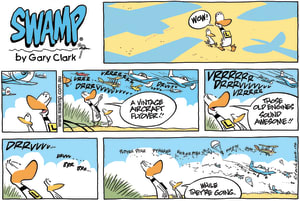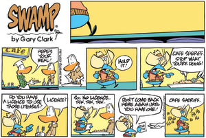 Cartoon ID Categories Air Traffic ControllerAntsArmy DucksAviator DucksBludgerigar BirdBob CrayfishCarrier PigeonCheese & Chives RatsChefChickenscockroachesDing DuckDing's DadDung BeetlesFishFliesFlying School InstructorKamikaze DuckMosquitoesOld Man Croc & Nit-Picker BirdPigspilotsPoultry SquadRogue CrocsSwamp DucksSwamp ToursSwamp VetTurtle & SnailUncategorizedWart & Mort FrogsWild DucksWorms KeyWords Location Exclude Sunday Featured Character Featured Character S1791 (01/12/24) : Vintage Aircraft Flyover 9704 (30/11/24) : Brutus Cockroach is Offended 9702 (29/11/24) : Nest Building Prank 9698 (28/11/24) : What a Life Comic 9697 (27/11/24) : Worst Nightmare Comic 9696 (26/11/24) : Taught a Lesson Comic 9695 (25/11/24) : Fish Feeders are Coming S1787 (24/11/24) : Bob Crayfish Sheriff Comic 9693 (23/11/24) : Interrogation Techniques Comic Previous Next