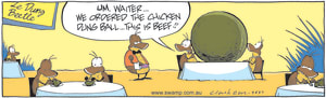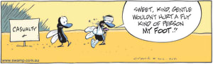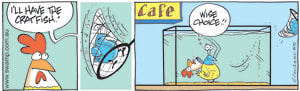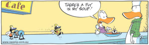 Cartoon ID Categories Air Traffic ControllerAntsArmy DucksAviator DucksBludgerigar BirdBob CrayfishCarrier PigeonCheese & Chives RatsChefChickenscockroachesDing DuckDing's DadDung BeetlesFishFliesFlying School InstructorKamikaze DuckMosquitoesOld Man Croc & Nit-Picker BirdPigspilotsPoultry SquadRogue CrocsSwamp DucksSwamp ToursSwamp VetTurtle & SnailUncategorizedWart & Mort FrogsWild DucksWorms KeyWords Location Exclude Sunday Featured Character Featured Character 9638 (04/11/24) : Rain Cartoon S1595 (03/11/24) : Swamp Ants Cross Country Race 9637 (02/11/24) : Wrong Dish Comic 9635 (01/11/24) : Bob the Crayfish off the menu 9633 (31/10/24) : Flight Theory Question 9631 (30/10/24) : Fly vs Sweet Gentle Person 9630 (29/10/24) : Restaurant Rescue 9629 (28/10/24) : Fly Pinata Comic S1794 (27/10/24) : Swamp Rats Flight Previous Next