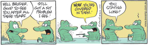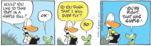 Cartoon ID Categories Air Traffic ControllerAntsArmy DucksAviator DucksBludgerigar BirdBob CrayfishCarrier PigeonCheese & Chives RatsChefChickenscockroachesDing DuckDing's DadDung BeetlesFishFliesFlying School InstructorKamikaze DuckMosquitoesOld Man Croc & Nit-Picker BirdPigspilotsPoultry SquadRogue CrocsSwamp DucksSwamp ToursSwamp VetTurtle & SnailUncategorizedWart & Mort FrogsWild DucksWorms KeyWords Location Exclude Sunday Featured Character Featured Character 9610 (18/10/24) : Chef is Coming for Him 9608 (17/10/24) : Tenant Secrets 9607 (16/10/24) : Participate in His Poll 9606 (15/10/24) : Simple Poll 9601 (14/10/24) : Cheap Knowledge S1790 (13/10/24) : Swamp Rats Ad Break 9599 (12/10/24) : A Bad Sign 9596 (11/10/24) : Some Sad News 9595 (10/10/24) : Got a Nit Problem Previous Next