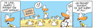 Cartoon ID Categories Air Traffic ControllerAntsArmy DucksAviator DucksBludgerigar BirdBob CrayfishCarrier PigeonCheese & Chives RatsChefChickenscockroachesDing DuckDing's DadDung BeetlesFishFliesFlying School InstructorKamikaze DuckMosquitoesOld Man Croc & Nit-Picker BirdPigspilotsPoultry SquadRogue CrocsSwamp DucksSwamp ToursSwamp VetTurtle & SnailUncategorizedWart & Mort FrogsWild DucksWorms KeyWords Location Exclude Sunday Featured Character Featured Character 10040 (02/09/25) : Tough Flying Lesson 10039 (01/09/25) : Falling Star Comic S1083 (31/08/25) : Junk 10038 (30/08/25) : Channel Surfing Comic 10037 (29/08/25) : Slight Delay 10036 (28/08/25) : Recommend the Shrimp 10035 (27/08/25) : Driving Conditions Comic 10034 (26/08/25) : Air Traffic Control Weather Forecast 10033 (25/08/25) : Air Traffic Control Notice Previous Next