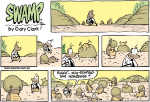 Cartoon ID Categories Air Traffic ControllerAntsArmy DucksAviator DucksBludgerigar BirdBob CrayfishCarrier PigeonCheese & Chives RatsChefChickenscockroachesDing DuckDing's DadDung BeetlesFishFliesFlying School InstructorKamikaze DuckMosquitoesOld Man Croc & Nit-Picker BirdPigspilotsPoultry SquadRogue CrocsSwamp DucksSwamp ToursSwamp VetTurtle & SnailUncategorizedWart & Mort FrogsWild DucksWorms KeyWords Location Exclude Sunday Featured Character Featured Character 11905 (01/02/24) : Flying Instructor Looking for Ding 11904 (31/01/24) : Aviator Ducks Lost 11902 (30/01/24) : Snapper Croc Caught by Rangers 11901 (29/01/24) : Flight Leader is Fun S1681 (28/01/24) : Created Huge Mess 11893 (27/01/24) : Sign us up for Apartment Living 11892 (26/01/24) : Bob Crayfish Hold That Pose 11891 (25/01/24) : Clog Dancing Championship 11900 (24/01/24) : Dungle Beetles Hustled to Work Previous Next