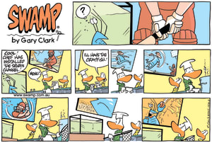 Cartoon ID Categories Air Traffic ControllerAntsArmy DucksAviator DucksBludgerigar BirdBob CrayfishCarrier PigeonCheese & Chives RatsChefChickenscockroachesDing DuckDing's DadDung BeetlesFishFliesFlying School InstructorKamikaze DuckMosquitoesOld Man Croc & Nit-Picker BirdPigspilotsPoultry SquadRogue CrocsSwamp DucksSwamp ToursSwamp VetTurtle & SnailUncategorizedWart & Mort FrogsWild DucksWorms KeyWords Location Exclude Sunday Featured Character Featured Character S1679 (14/01/24) : Aviator Duck in Distress 11880 (13/01/24) : Swamp Ducks Gas Bubbles 11879 (12/01/24) : More Frequent Bird Strikes 11878 (11/01/24) : Old Man Croc Stealth 11870 (10/01/24) : Chives Rat Makes Wish 11869 (09/01/24) : Genie in the Toilet 11868 (08/01/24) : Chives Rat Surprised by Genie Christmas 2023 (25/12/23) : Merry Christmas for 2023 S1678 (24/12/23) : Bob Crayfish Cricket Comic Previous Next