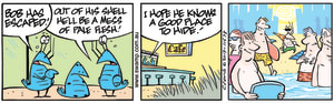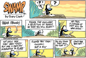Cartoon ID Categories Air Traffic ControllerAntsArmy DucksAviator DucksBludgerigar BirdBob CrayfishCarrier PigeonCheese & Chives RatsChefChickenscockroachesDing DuckDing's DadDung BeetlesFishFliesFlying School InstructorKamikaze DuckMosquitoesOld Man Croc & Nit-Picker BirdPigspilotsPoultry SquadRogue CrocsSwamp DucksSwamp ToursSwamp VetTurtle & SnailUncategorizedWart & Mort FrogsWild DucksWorms KeyWords Location Exclude Sunday Featured Character Featured Character 11673 (06/12/23) : Bob Crayfish Pale Flesh 11672 (05/12/23) : Bob Crayfish Interesting 11671 (04/12/23) : Ding Duck Followed S1636 (03/12/23) : Swamp Flies Trick Frogs Comic 11667 (02/12/23) : Swamp Snail Slime Comic 11668 (01/12/23) : Air Traffic Controller Annoyed 11669 (30/11/23) : Bob Crayfish Escape Plan 11665 (29/11/23) : Ding Duck Moment 11664 (28/11/23) : Bob Crayfish Hurry Previous Next