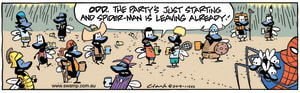 Cartoon ID Categories Air Traffic ControllerAntsArmy DucksAviator DucksBludgerigar BirdBob CrayfishCarrier PigeonCheese & Chives RatsChefChickenscockroachesDing DuckDing's DadDung BeetlesFishFliesFlying School InstructorKamikaze DuckMosquitoesOld Man Croc & Nit-Picker BirdPigspilotsPoultry SquadRogue CrocsSwamp DucksSwamp ToursSwamp VetTurtle & SnailUncategorizedWart & Mort FrogsWild DucksWorms KeyWords Location Exclude Sunday Featured Character Featured Character 11603 (04/10/23) : Make Quick Buck 11602 (03/10/23) : Fly Fancy Dress Party 11597 (02/10/23) : Back in Captivity S1723 (01/10/23) : Sweating It Out 11595 (30/09/23) : Affirmative or Negative 11594 (29/09/23) : Built on Trust 11593 (28/09/23) : Makes Random Choice 11587 (27/09/23) : Here Come the Critics 11586 (26/09/23) : About to Order Crayfish Previous Next